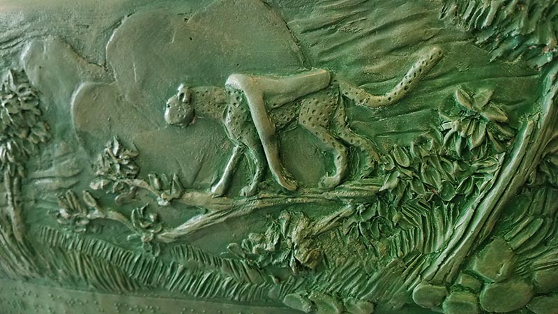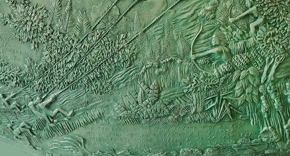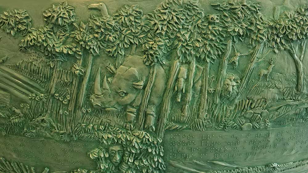 Braille would be mixed with many small bas-reliefs to touch and see.