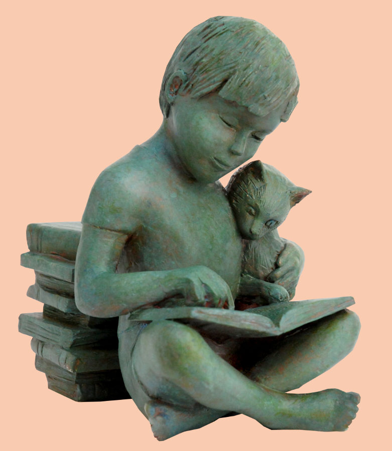 Also, I agreed to reproduce, in smaller, the boy who reads to his cat.