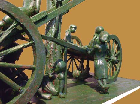 Sie sind nicht aufgeregt. Sie klappern, spielen knucklebones. Einer von ihnen stemmte sich in der Nähe des Baumes. Er trägt ein Erwachsener hat, viel zu groß für ihn! Er wird nicht spielen Krieg. Er hat nicht eine Waffe in der Hand ... Er scheint für die Rückkehr der Erwachsenen beobachten ...