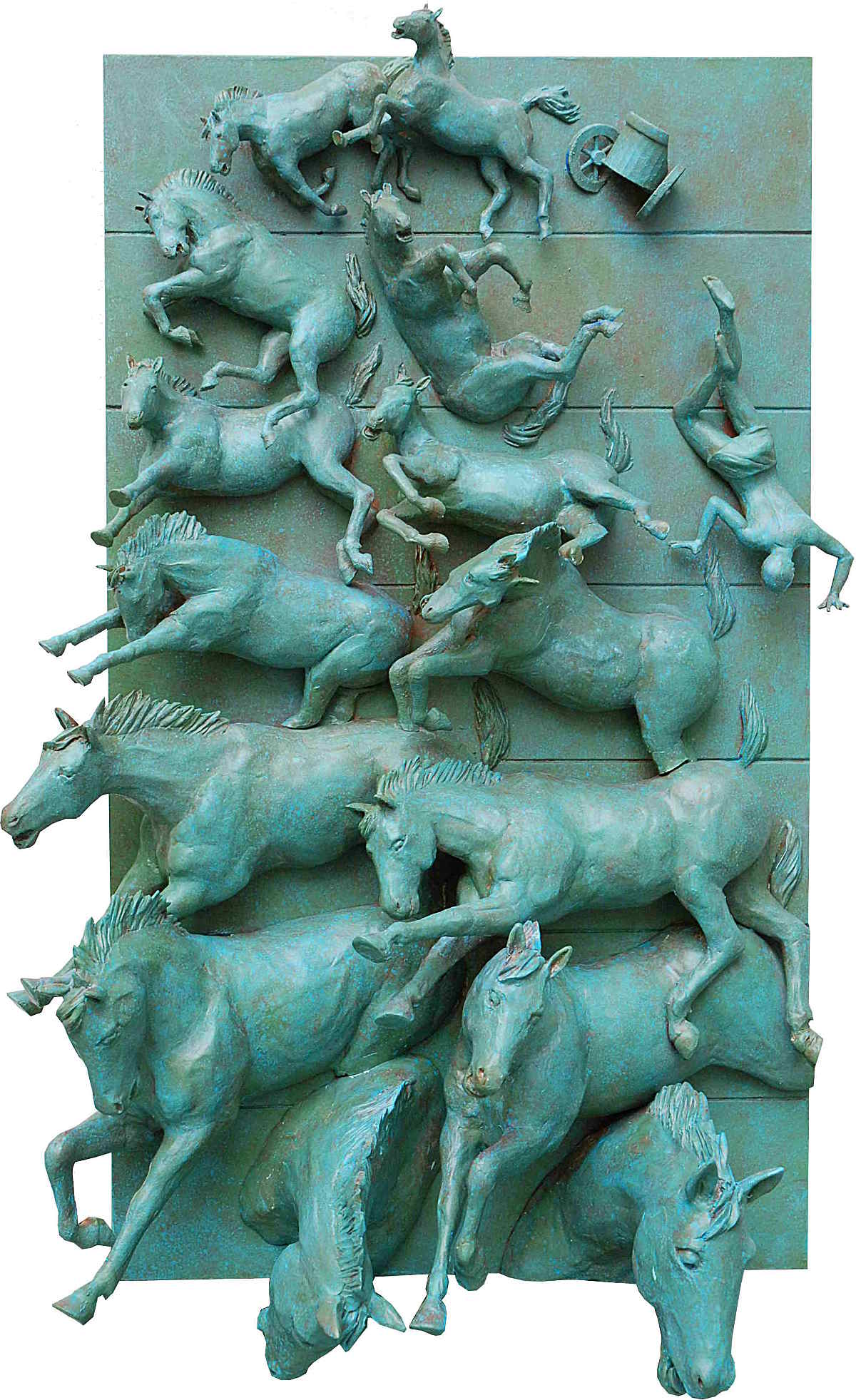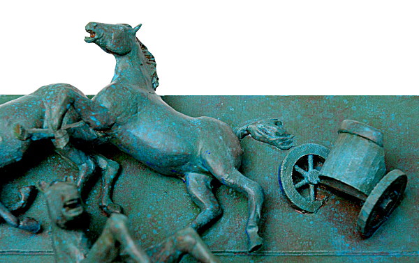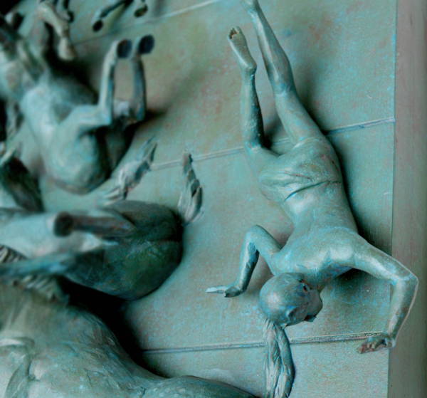 It seemed to me that a sculpture in the round would not be esthetic. The bas-relief is an ideal shape to express an event.