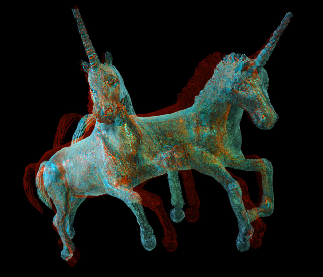 sculptures en relief ? Bruce Krebs ? Deux licornes ?